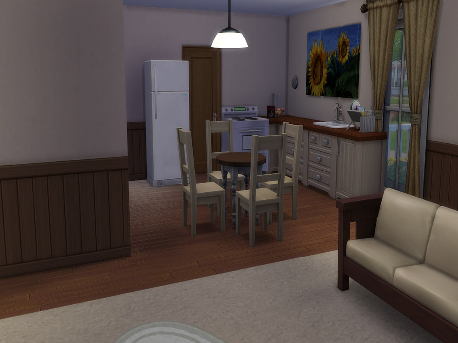 This is a lovely 2 bed, 1 bath starter home i tried to keep everything nice and cheap but it still looks really nice :) lovely for a little family. it has two bedrooms and one bathroom, also a nice little garden. No CC was used for this