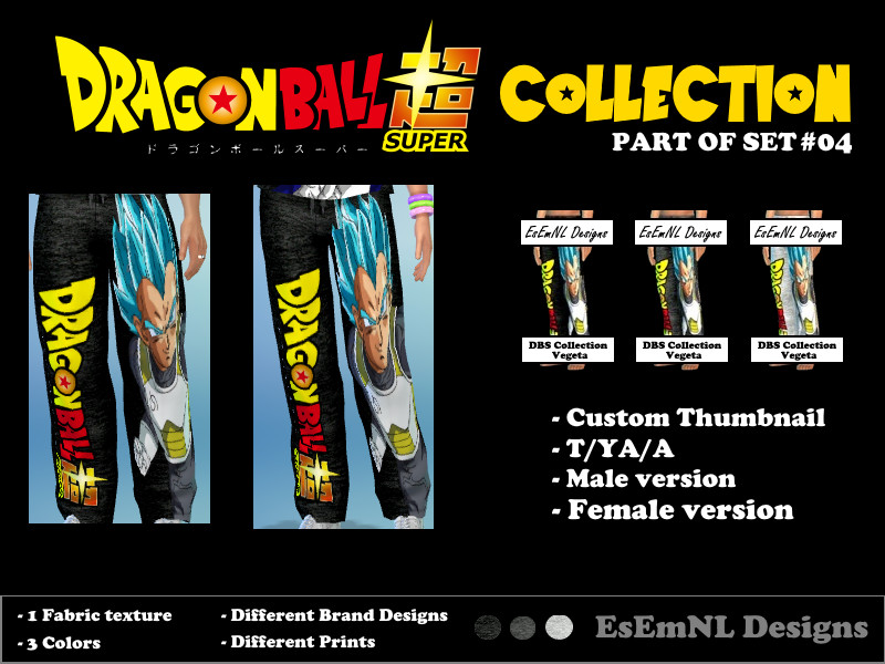 These Sweatpants are available in 3 colors (black, grey and white), with 2 different brand prints of Dragon Ball Super and 2 character prints of Gohan.