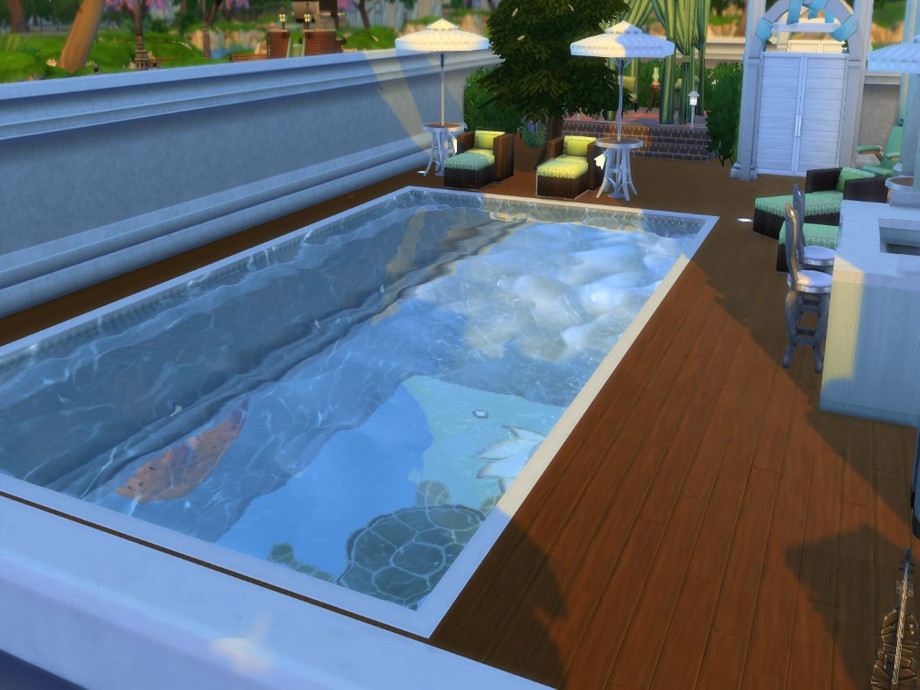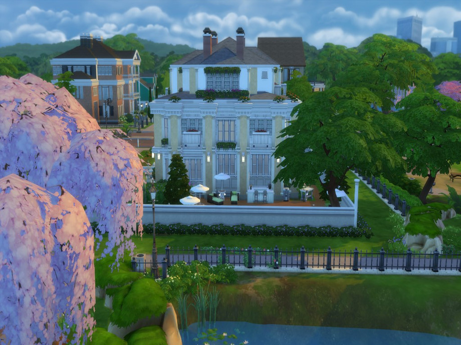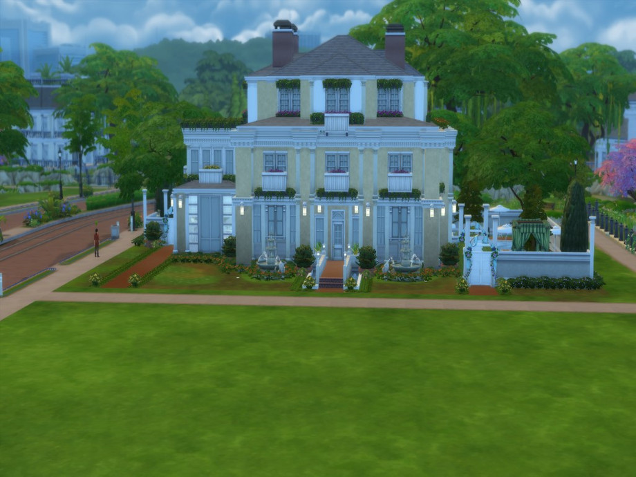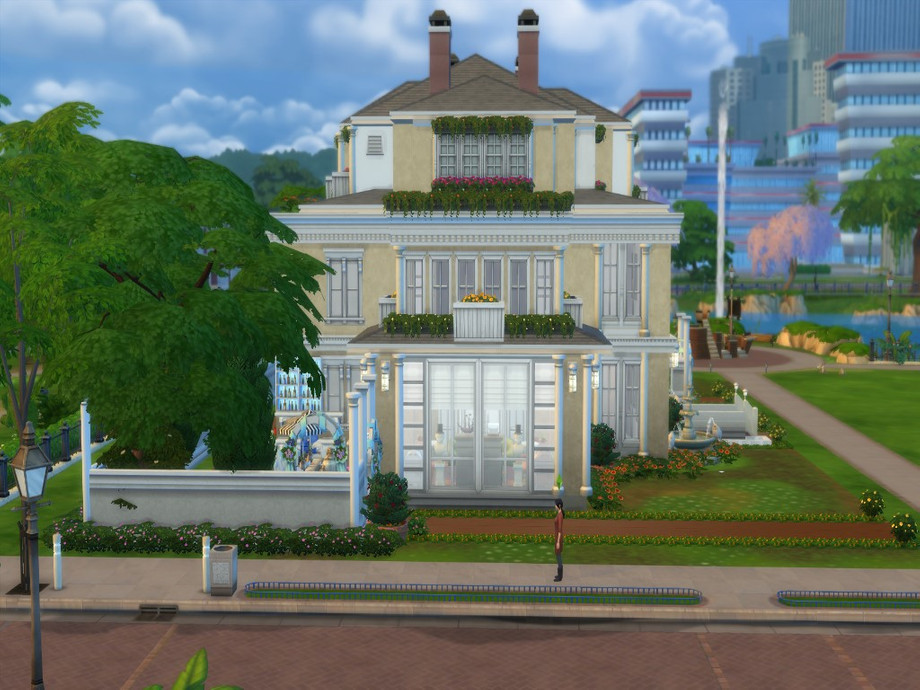 It is unfurnished and completely made by me. There is no CC in it. The outside is reminiscent of an old style of the #roaring1920's. One of my favorite eras. Its got lots of space for you, and for those who have all the packs to make it more stylish, which is why I left it unfurnished. It does however come with a ready backyard, lounge around pool area, a big pool, and sun room with patio and eating area and it also comes with a basketball court underway.