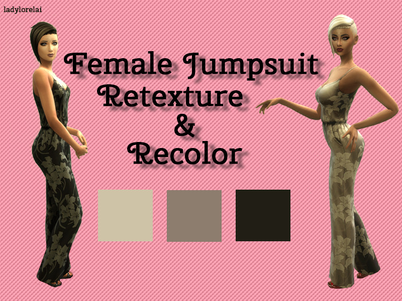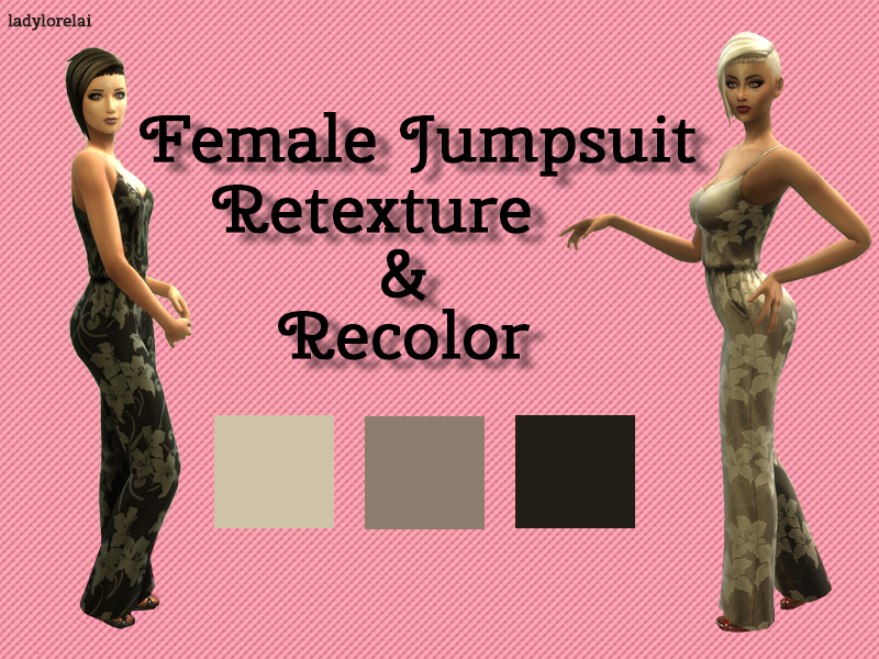 A recolor and retexture of a base game jumpsuit for females! This lovely floral print comes in 3 different swatches and is a great outfit for your everyday or even pajamas!