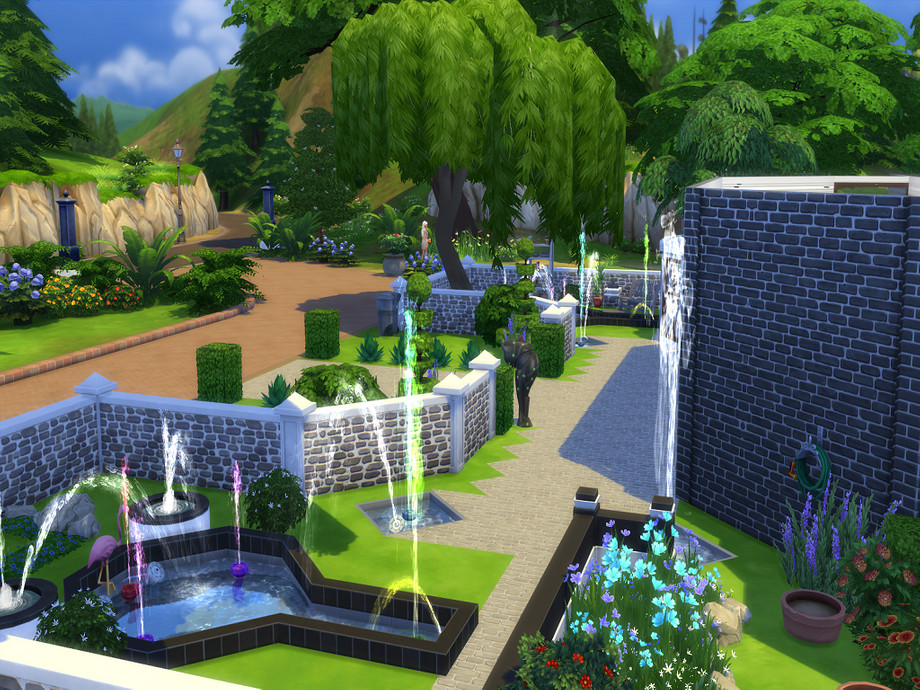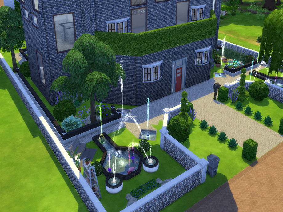 Walking up to this beautiful home, you will see fountains to your left and right as well as great shrubs and flowers and a couple trees :).