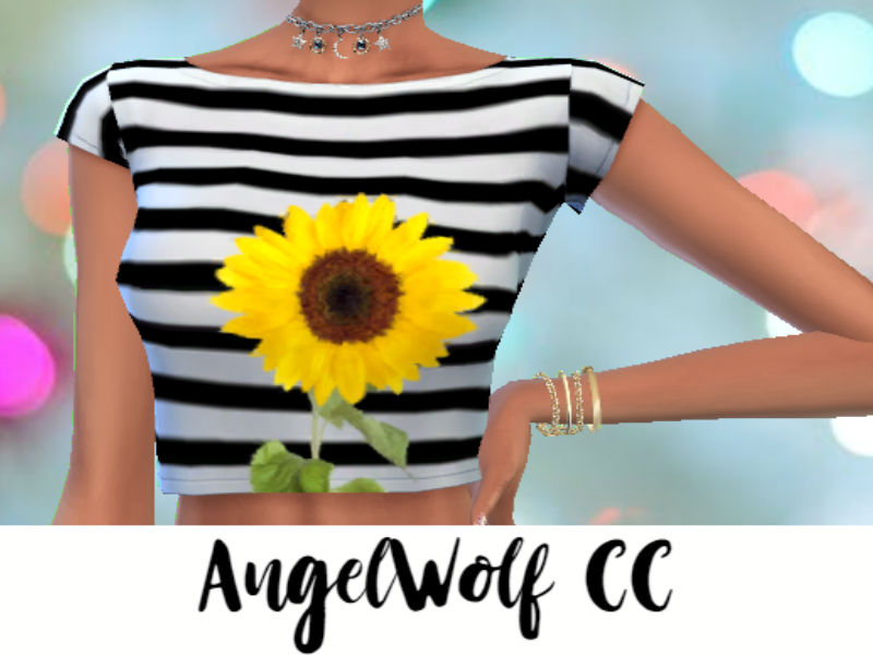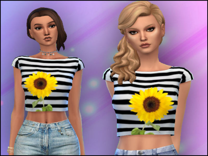 It's a crop top with black and white stripes, along with a sunflower design.
