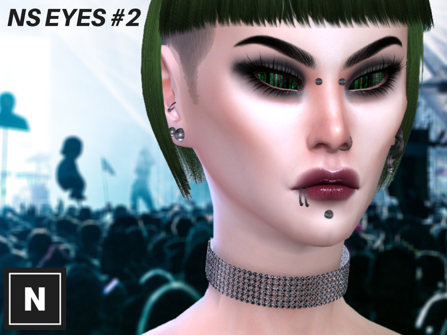 Eyes with a black and green pattern of characters.