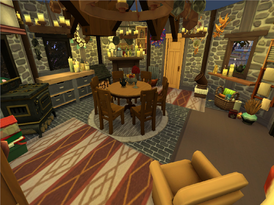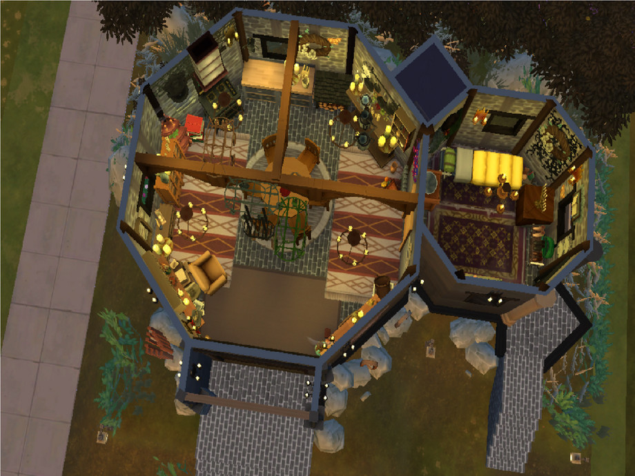 This beautiful cabin is an adaptation to the peculiar cabin of Hagrid in Harry Potter, it is not totally similar due to lack of resources but it is tried to do as similar as possible, this cabin like the one of the movie, has rustic and ordinary touches, you play with your Sims in it and you can imagine and remember a little about that cabin of the Popular Hagrid, this Solar is designed for a Sims, you could create Hagrid and Play Why not?