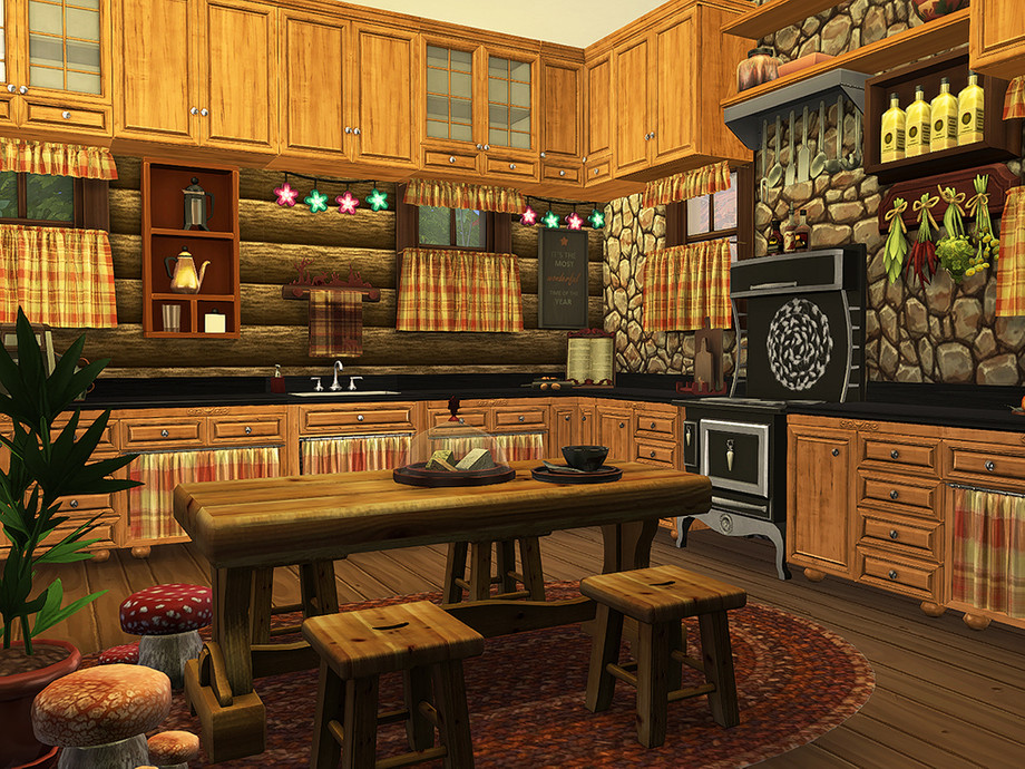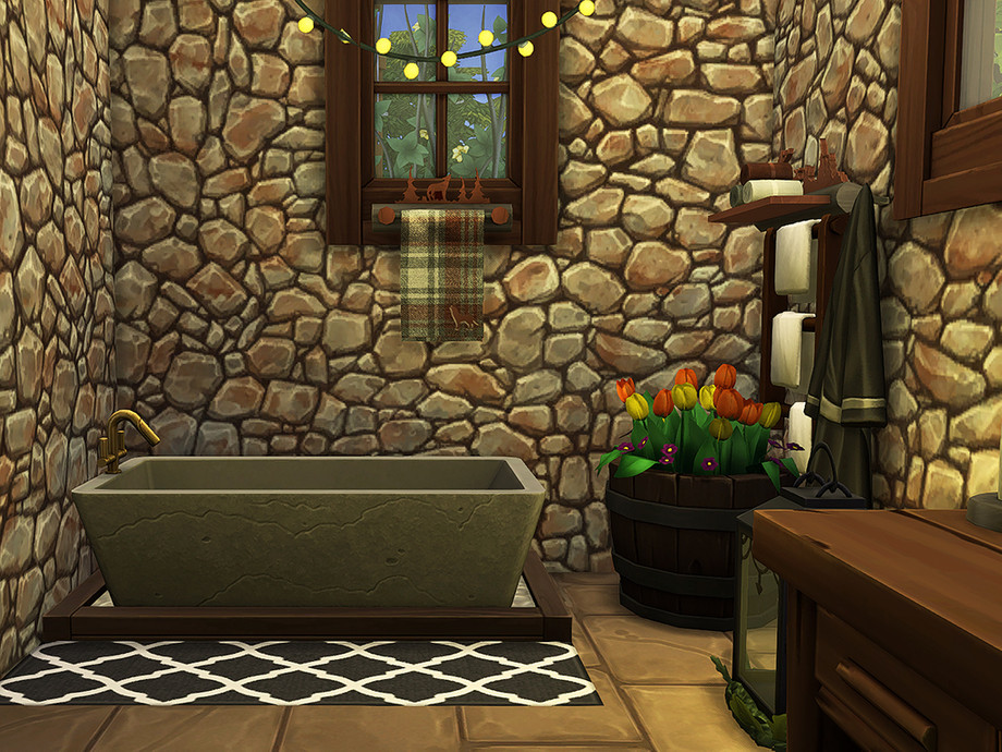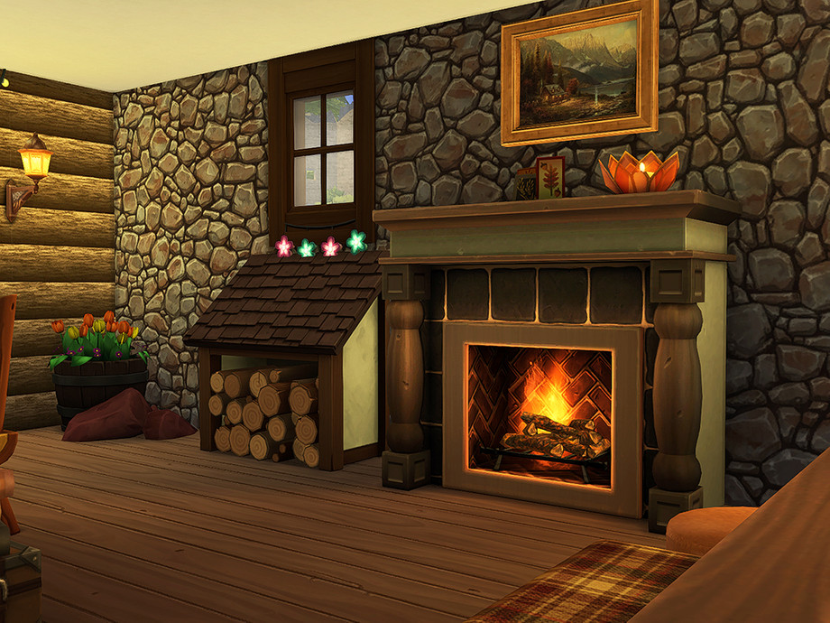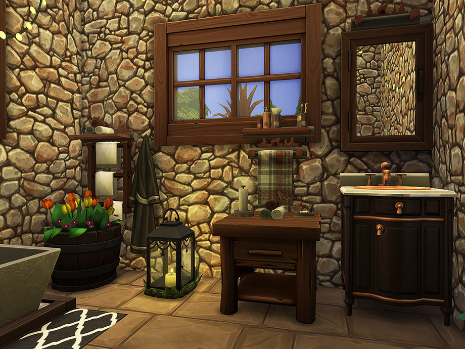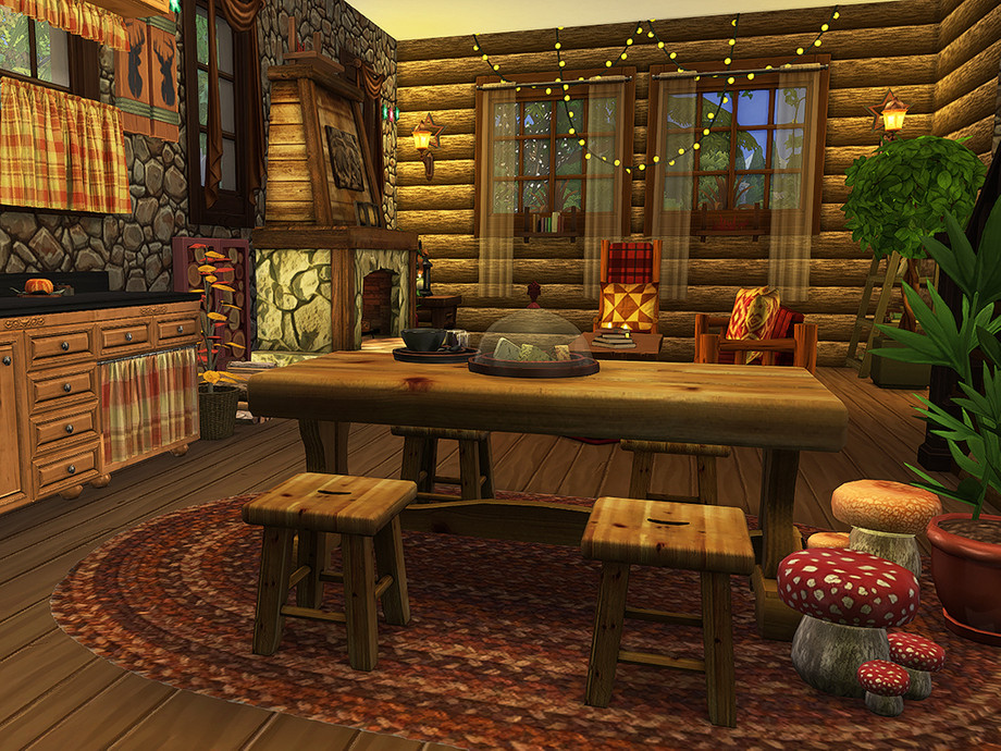 Woodland Fantasy is a rustic, two-story cottage, ideal for an outdoorsy-type sim or sim couple. It contains one bedroom, one bathroom, a kitchen, a living room, and a covered porch.