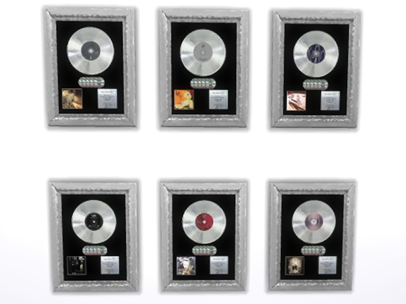 Six of Korn's platinum albums, ready to be hung in a fan's home or corporate recording studio.