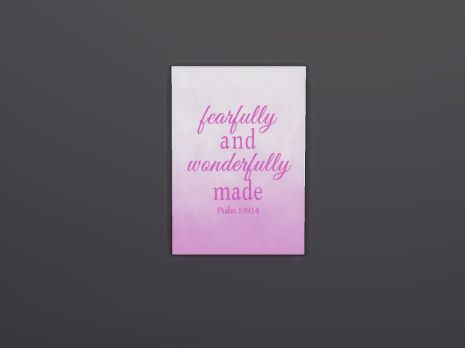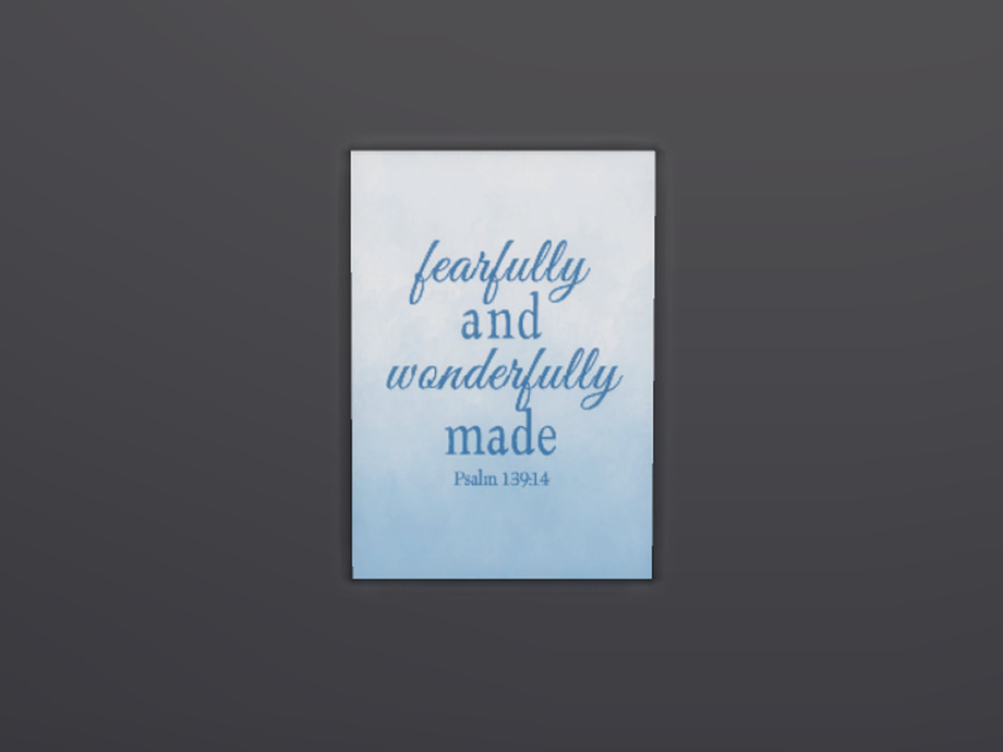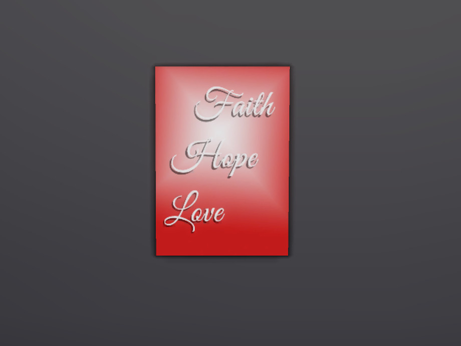 Christian quotes on canvas for your sims' home. DINE OUT required for it to work in-game. This is my first submission, so I hope you like it! You are welcome to let me know if there's a specific quote you'd like on one of these canvases. Enjoy!