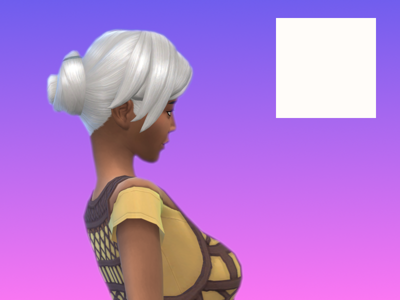 18 new colour options for the Base game hair style Updo Bun. This CC will not replace the current options, but instead add the new colours under the same hair style!