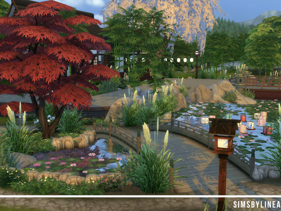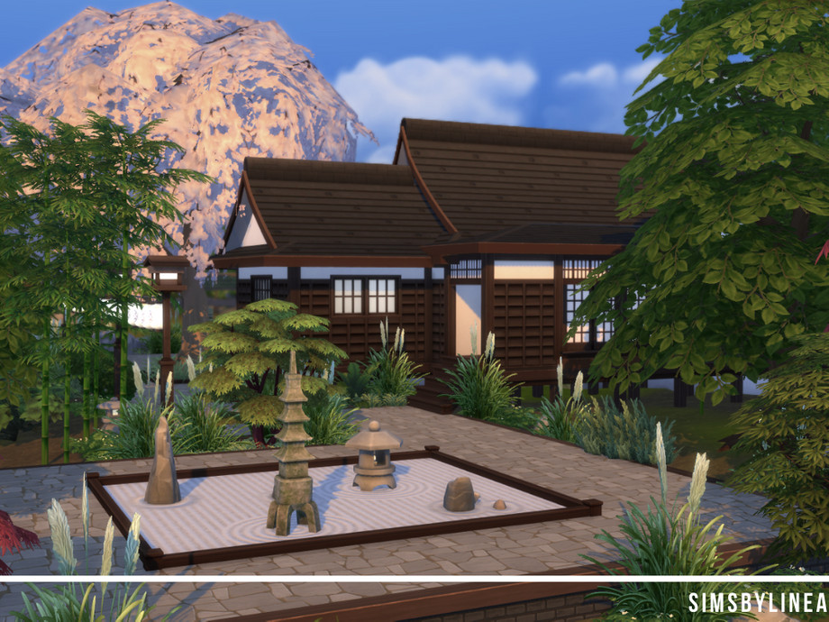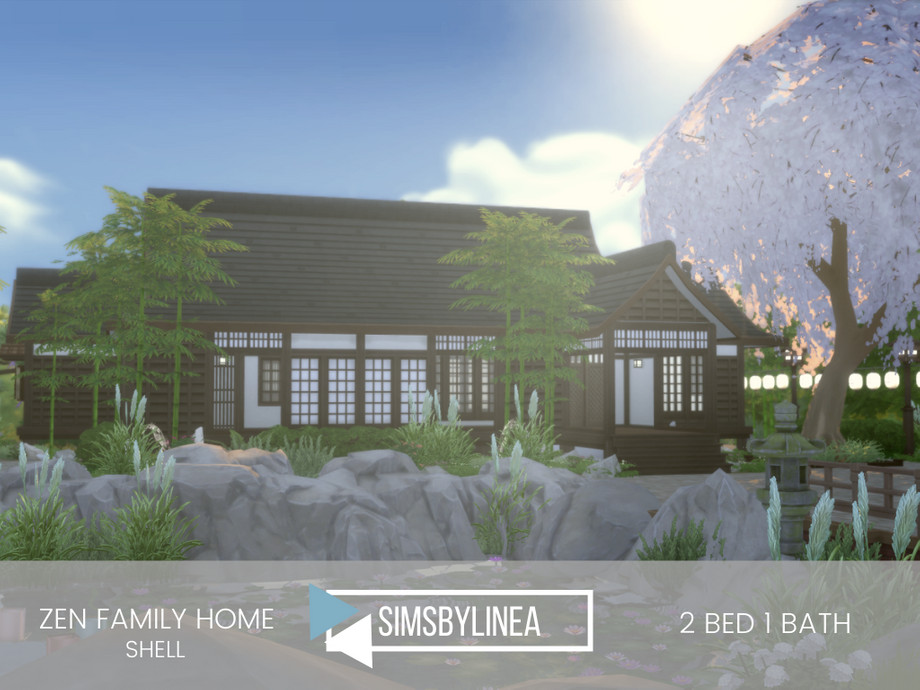 This laid-back Asian inspired family home boasts a gorgeous yard, with a large natural pond with bridges, a zen garden, a hot spring and beautiful landscaping. The shell is not furnished, and offers space for a family of two to three sims, who like to embrace a traditional Mt. Komorebi way of living.