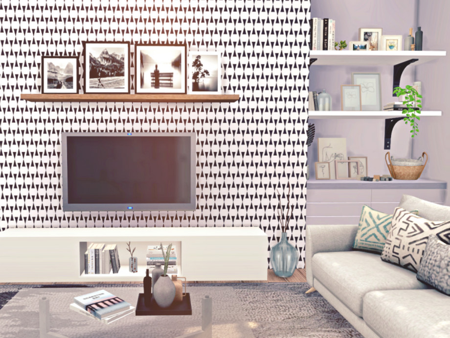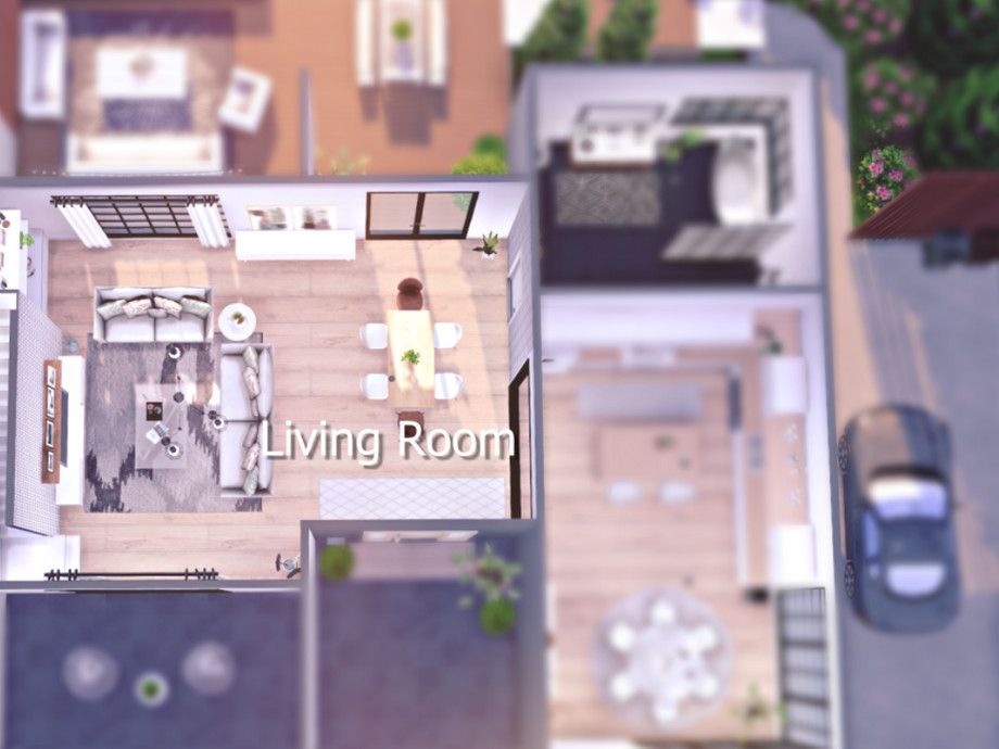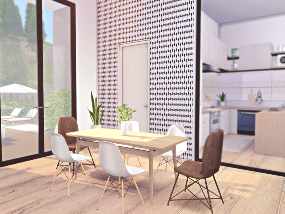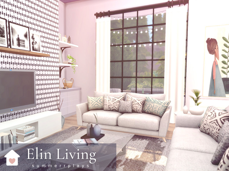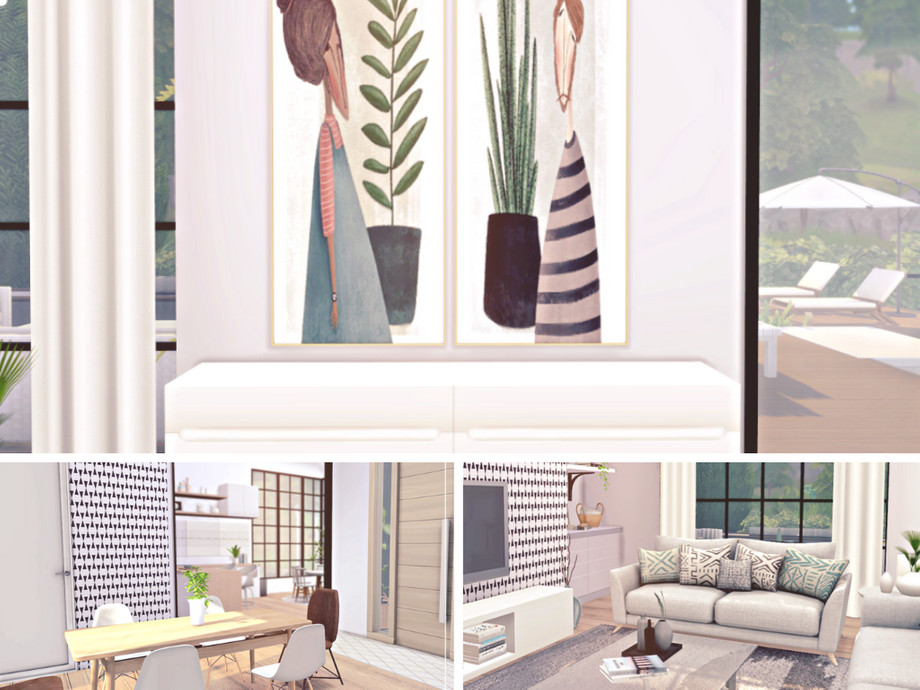 A modern Scandinavian inspired living and dining room. Use on its own or place it in my Elin Modern Farmhouse lot.