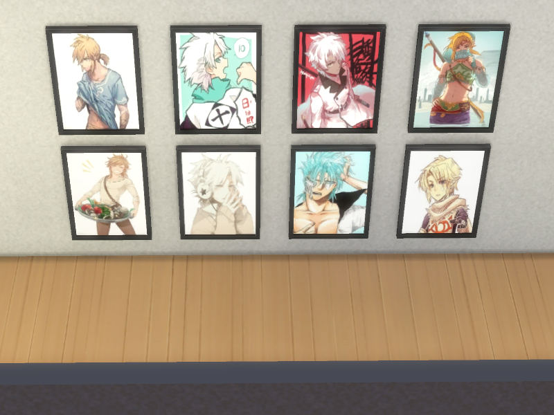 A retextured painting with 8 swatches, ranging from Link, Toshiro Hitsugaya and Grimmjow Jagerjaquez.