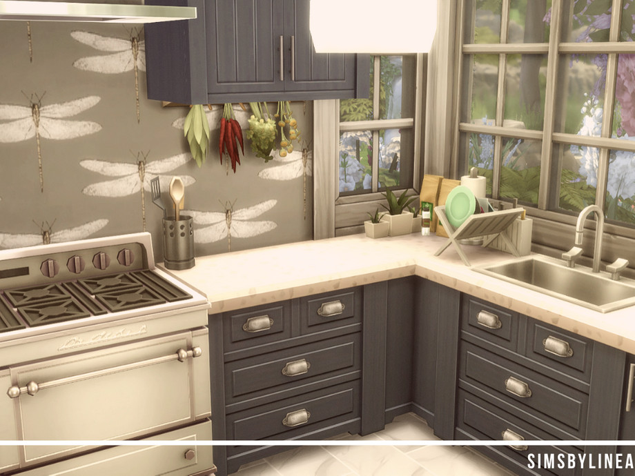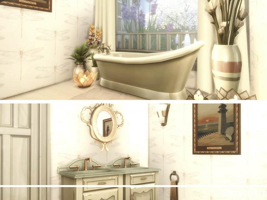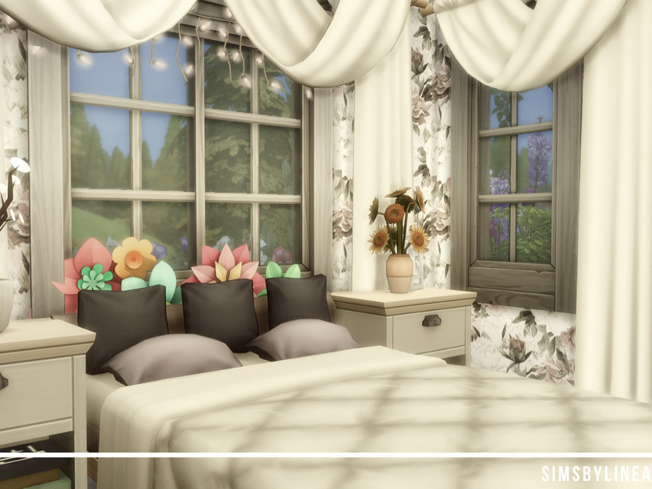 The Rustic Residence in Windenburg once was a modest starter home, but has now been brought to life with a floral and romantic look! Surrounded by a beautiful garden with flowers and bushes, a small pond and a hot spring, and a cozy interior with pastel colors, soft materials and floral accent wallpapers.