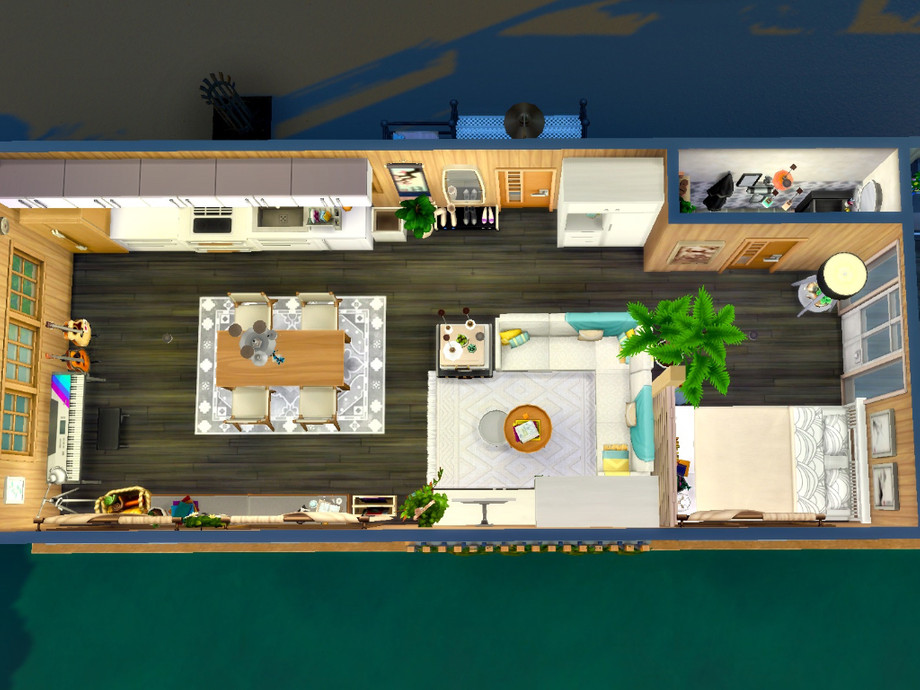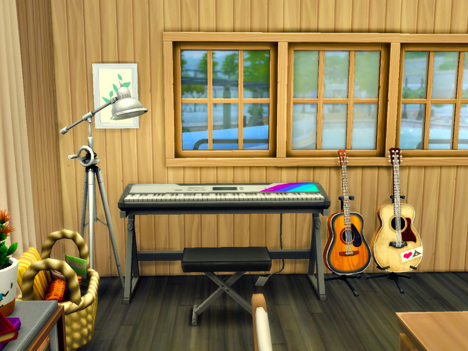 A small houseboat on the river inspired by typical houseboats in the Netherlands. It can house up to two sims and it is furnished for a musician