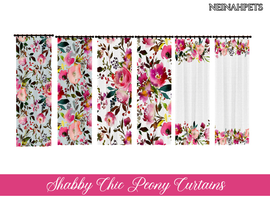 A lovely recolor of floor length curtains featuring several watercolor floral motifs.