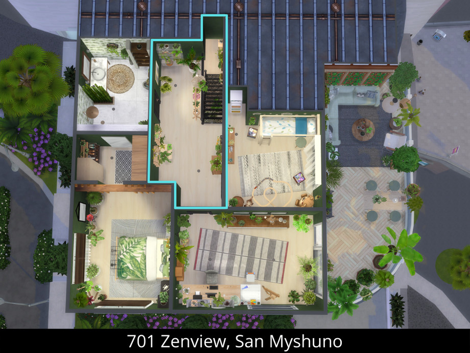 Of course you can use this room for any lot or building you like, but it was originally made for the 701 ZenView apartment in San Myshuno.