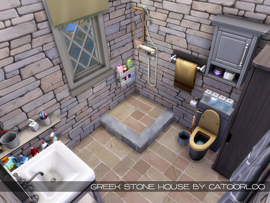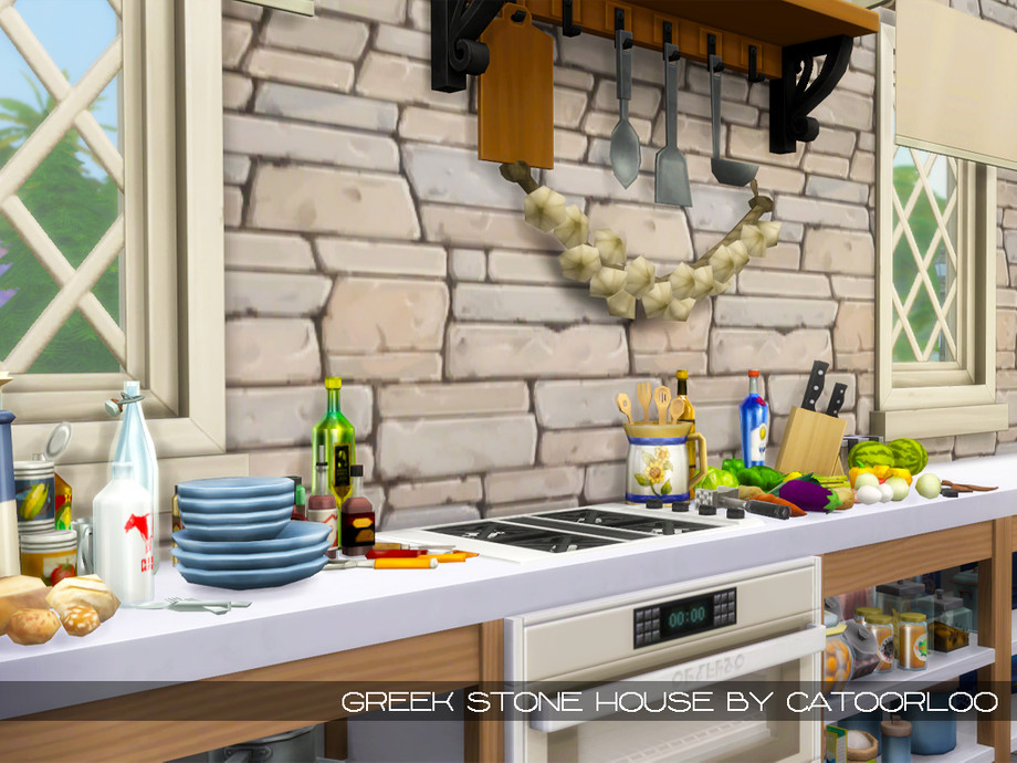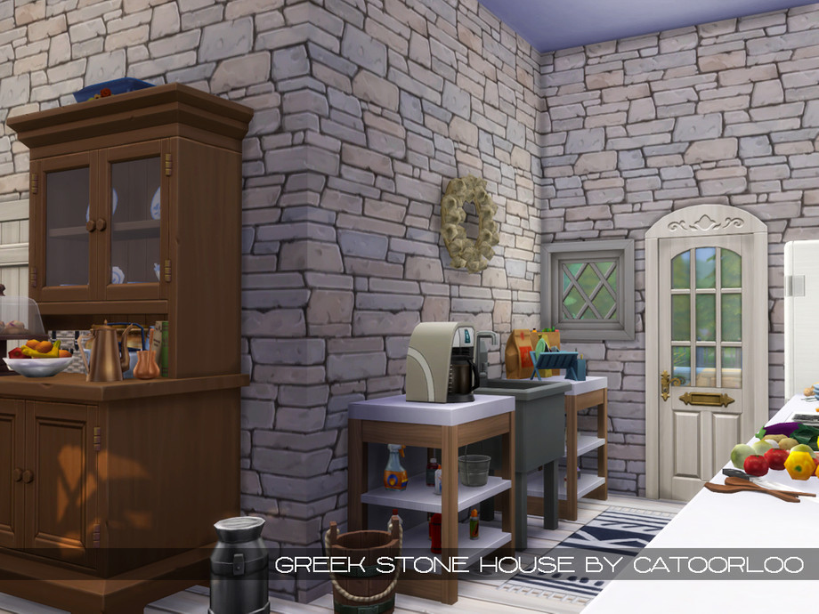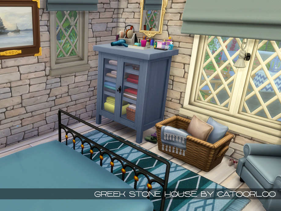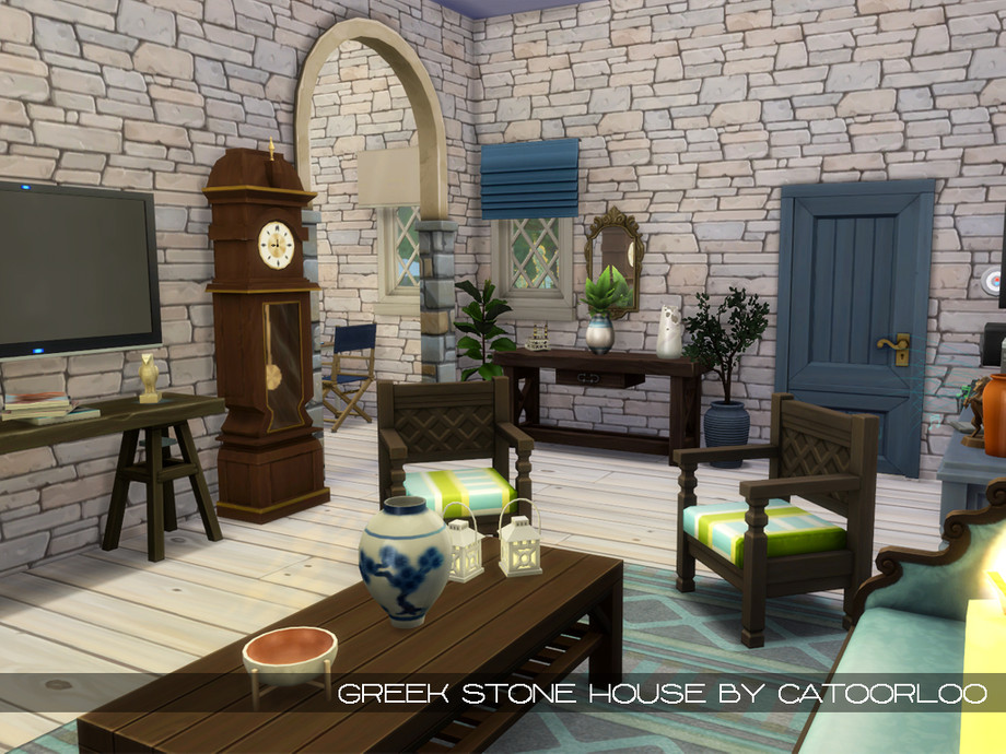This house it's inspired from the traditional stone houses in southern Greece. Stones combined with white and blue elements define the style and the look of houses in this corner of the world. The house has a living room, kitchen, 1 bedroom, 1 bathroom and a stone basement, which traditionally was a pantry, but I left it empty in order you'll put or decorate as you like. The interior decoration is a mix & match of traditional and modern furniture and details, which it's the style of the renovations of these old stone houses in our days. The garden is as close as it can be to the Greece landscape and includes a swimming pool and many resting corners, decorated with lanterns and candles always in blue hues.