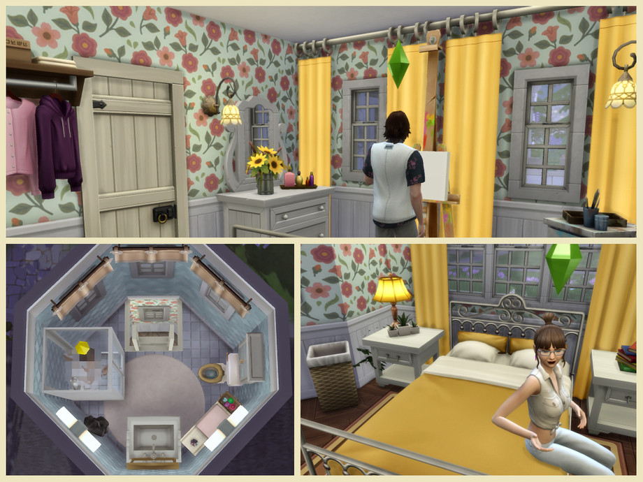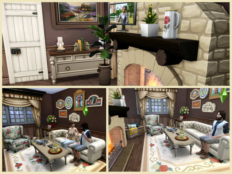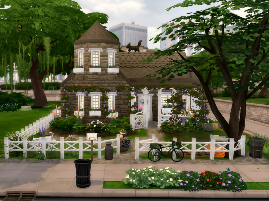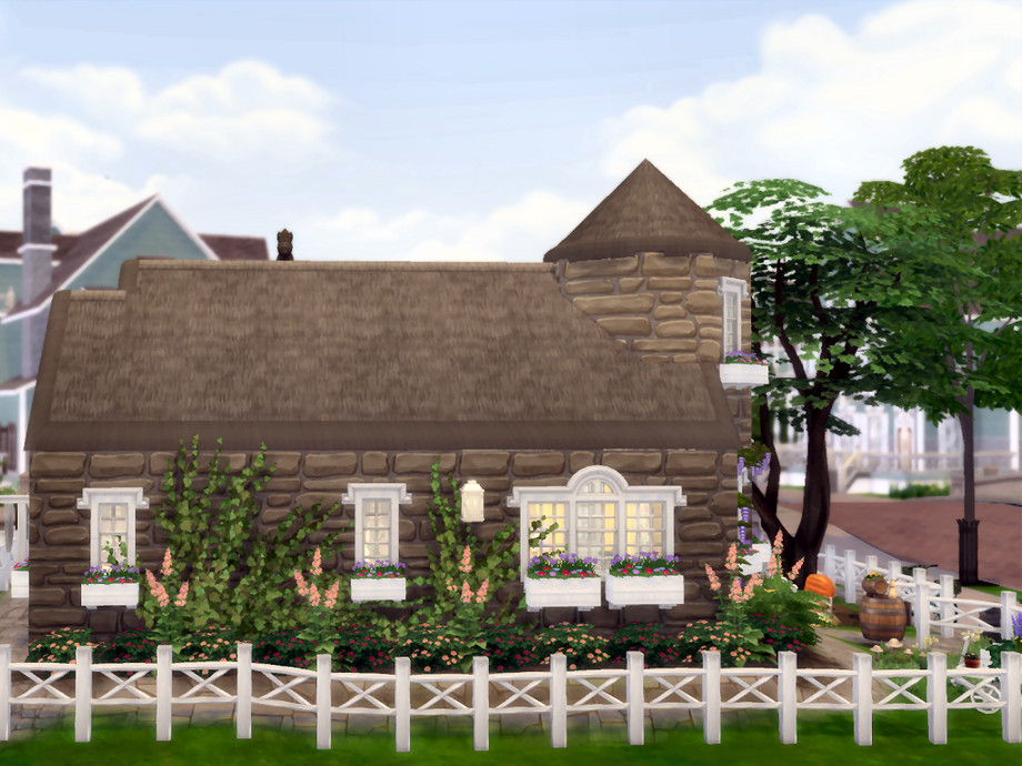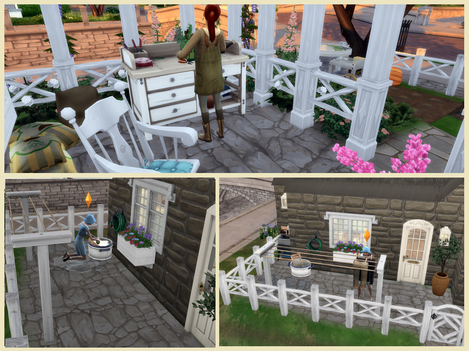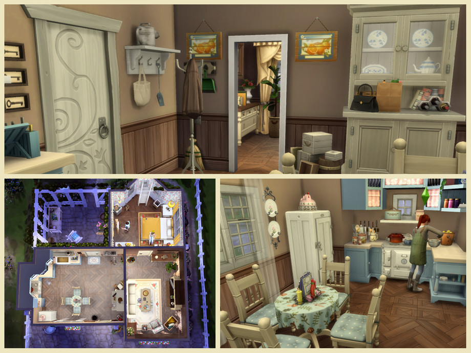 House furnished and decorated mainly with: Cottage Living and base game the other packs are only used for decoration not useful in the game.This pretty cottage for a couple passionate about garden and nature. Former dovecote, it has been enlarged and restored to make it a charming residence. Small vegetable patch the pumpkins are already sown. Floral arrangement, painting. The laundry is done by hand and the dishes too !!! Good game