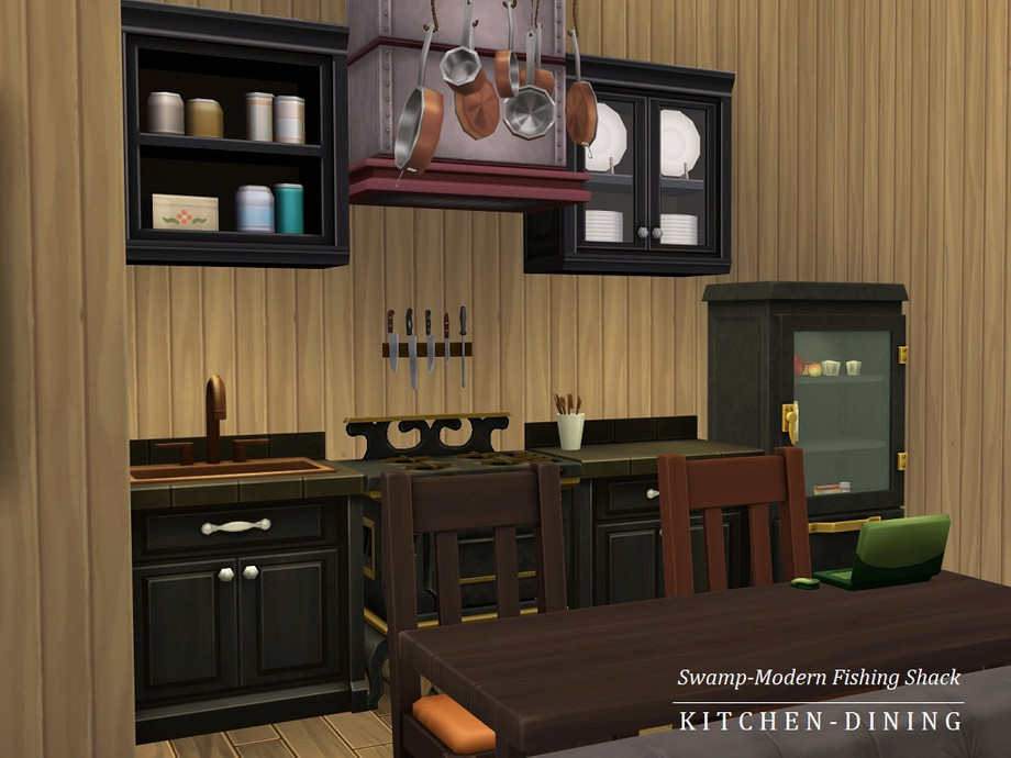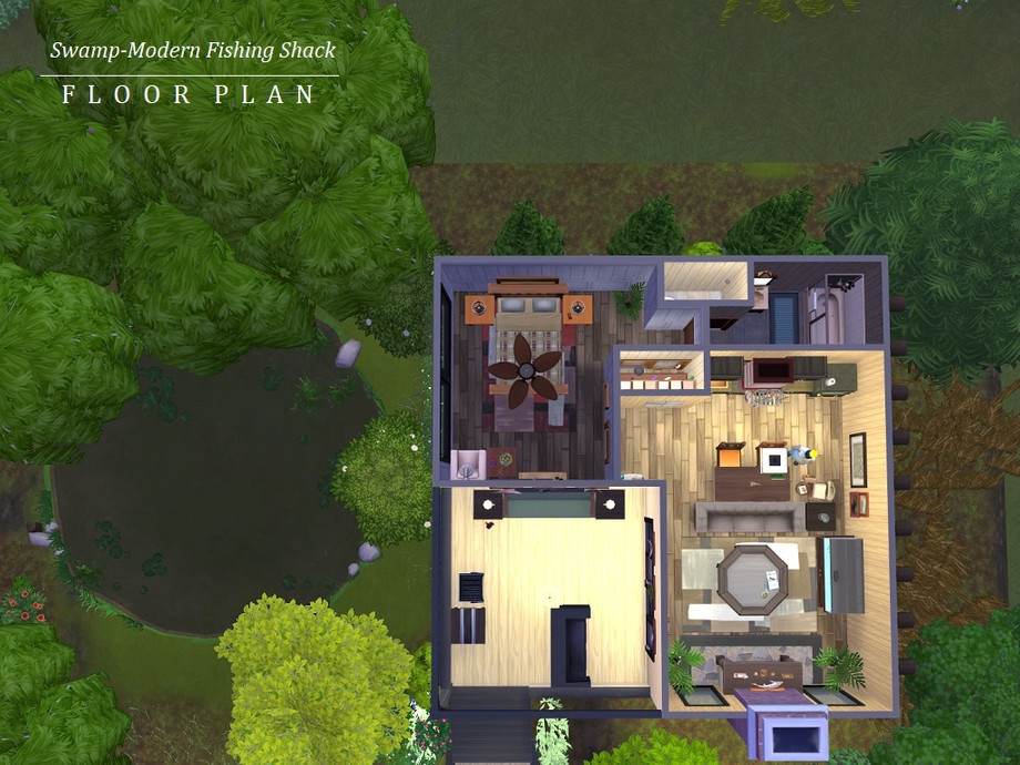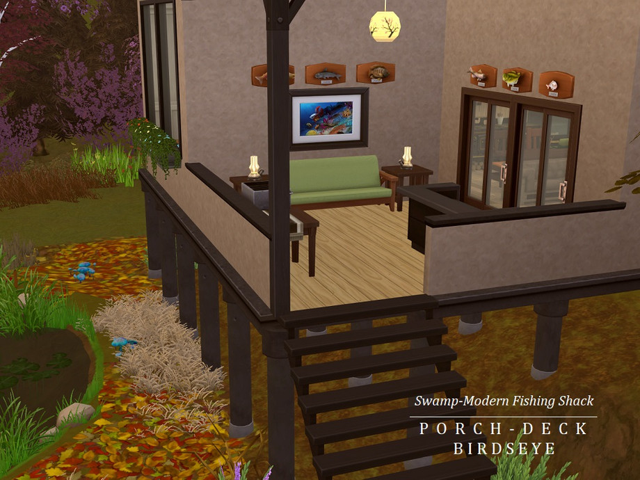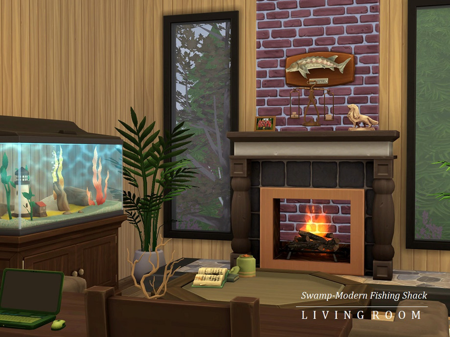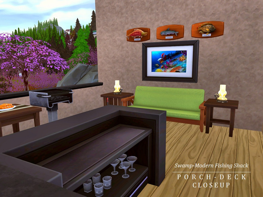 You love to fish? Yes? Yes! What you don't love is trying to fish while a bunch of amateur yahoos creates a ruckus at your favorite fishing spot with loud music and noise that scares the fish away. Am I right? Of course, I'm right. Introducing the Swamp-Modern Angler Shack (located on the Hindquarter Highlands lot in Brindleton Bay) equipped with everything you need for a relaxing and successful fishing trip -- even your own fish pond! So cast out, crack a drink, and let the fishing begin. And remember, locals only!