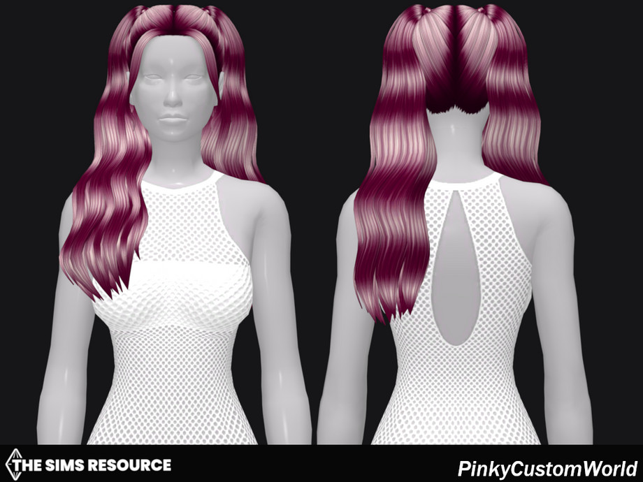 Medium long maxis hairstyle. This hair have cute, high pigtails and curtain bangs. Recolored in unnatural hair colors