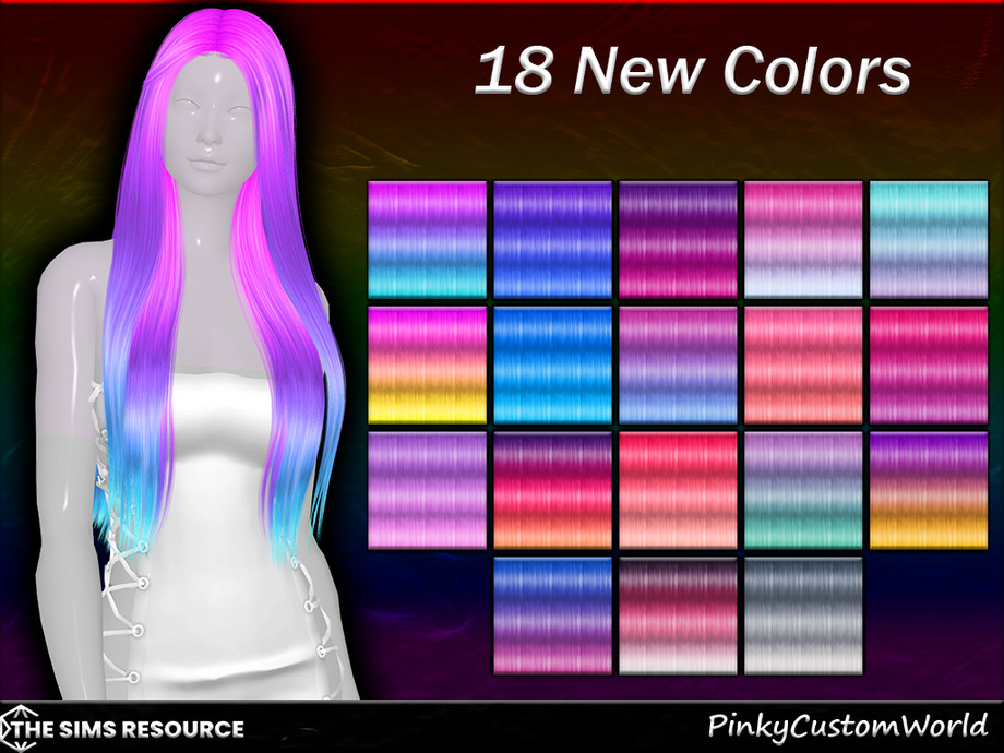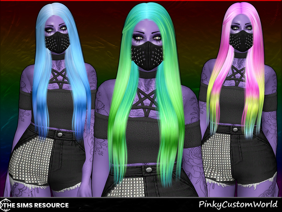 Simple long, straight alpha hairstyle in a wide variety of unnatural gradient hair colors