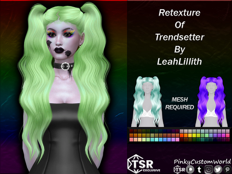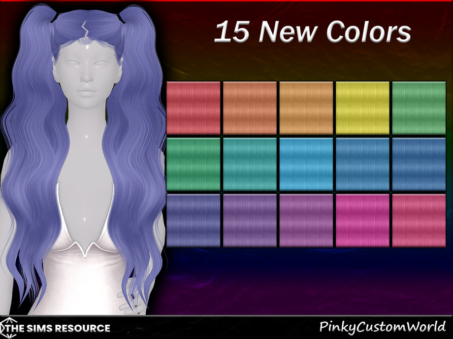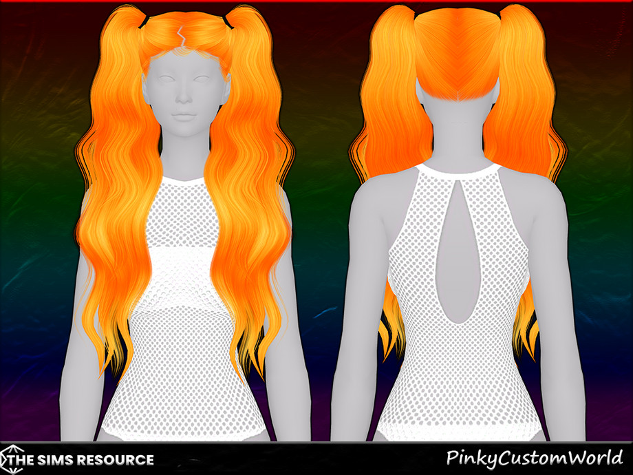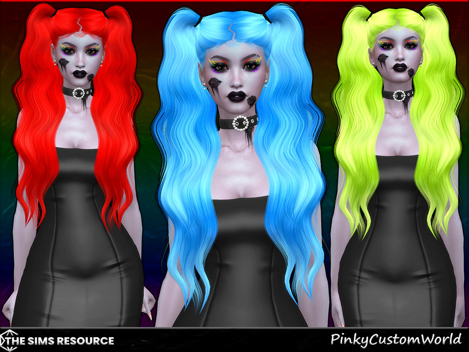Long, wavy pigtails alpha hairstyle originally made by LeahLillith, recolored in a wide variety of unnatural hair colors