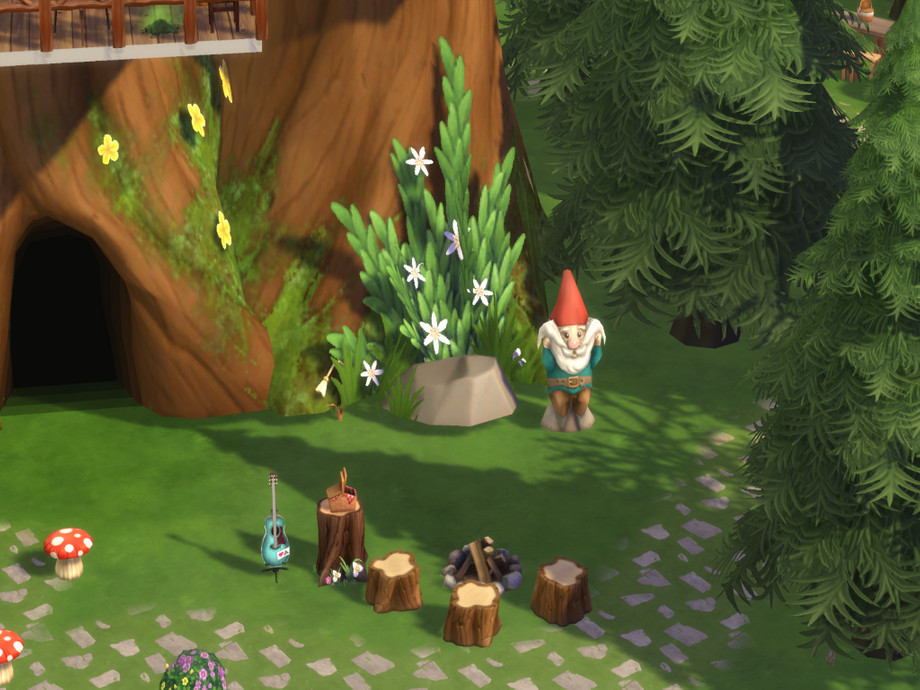 A fairy that enjoys the company of others at the fire pit. The fairy lives in a cozy cabin which is made out of toadstools. Perfect place for a fairy to live in.