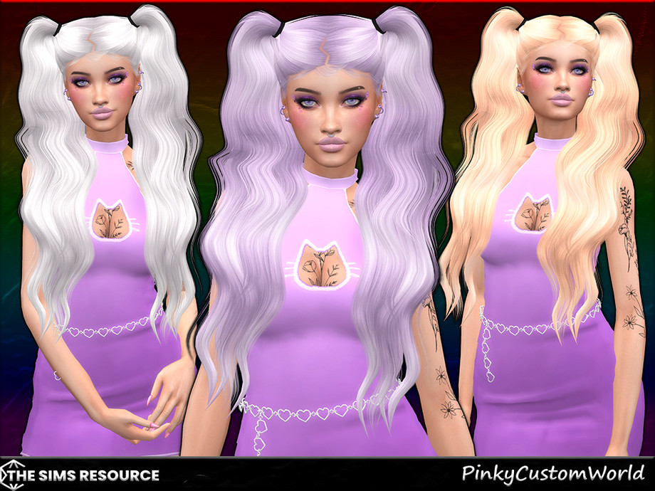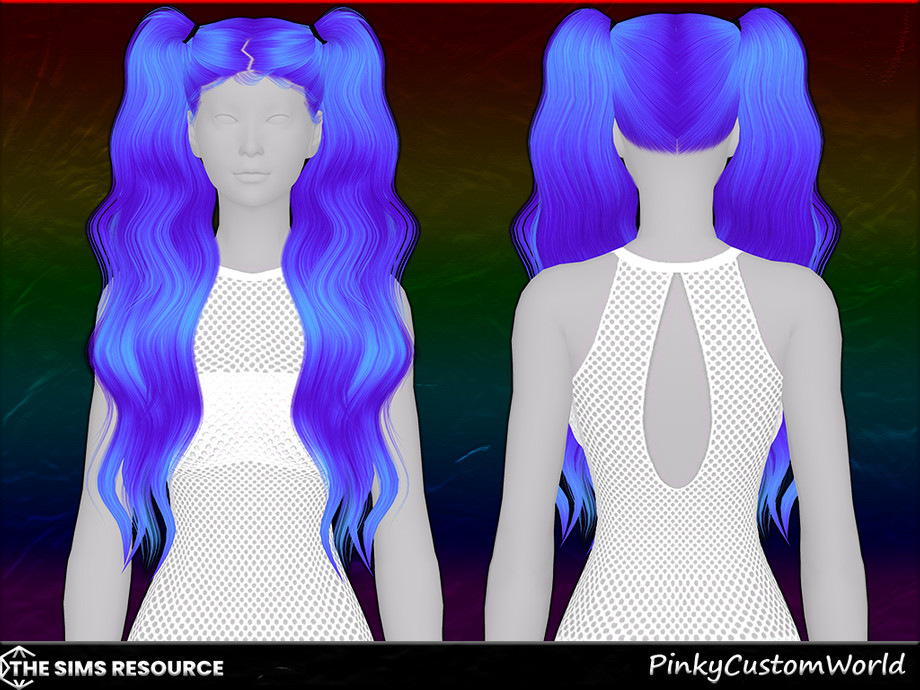 Long, wavy pigtails alpha hairstyle originally made by LeahLillith, recolored in a wide variety of unnatural hair colors