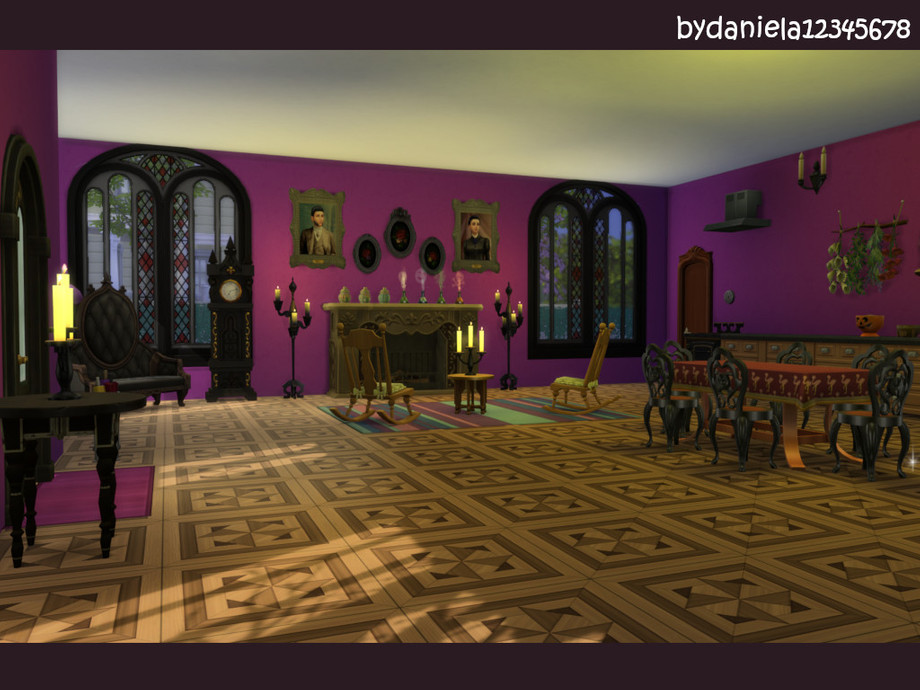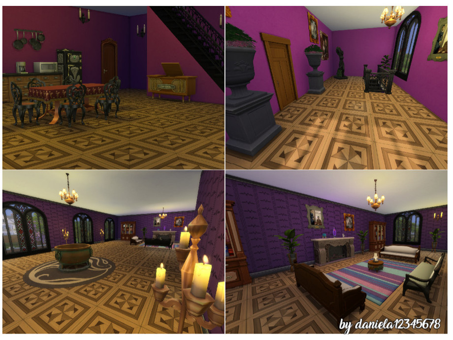 this house is by Morgana Maragna, it contains a bathroom, two living rooms with the plants,and one whit the cauldron and library . With one bedroom.The house is very welcoming and elegant, made dazzling by the large windows that illuminate the various areas of the house.All rooms have purple walls because Morgana like purple color.House suitable for witches who like purple color. In the extern you watch a wonderfull witch garden ,with so much pumpkins with the trees and plants and flowers. hope you like it.
