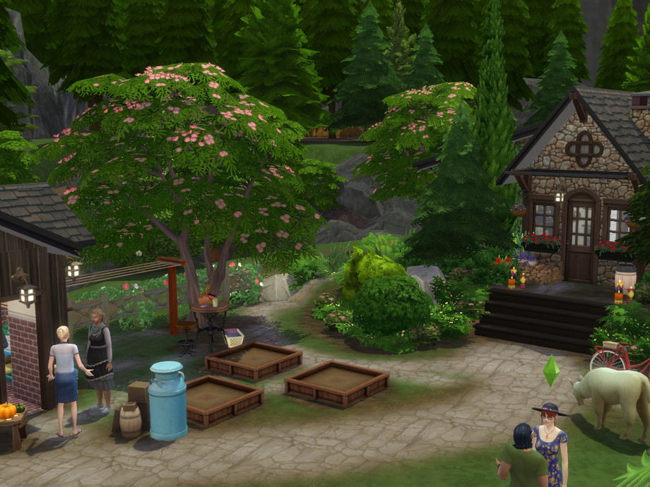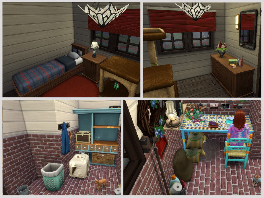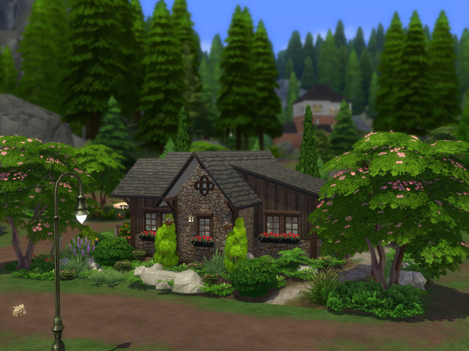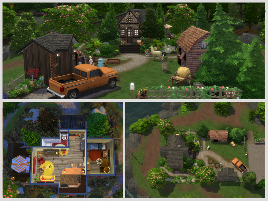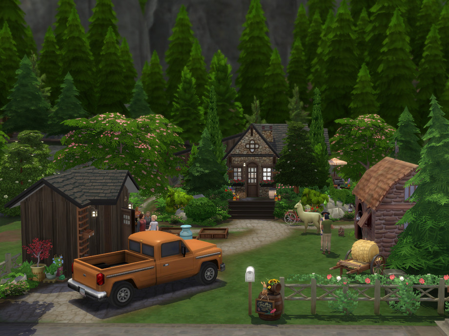 This adorable little house for a single nature and animal loving sim is perfect for raising a cow or a llama. Small vegetable garden to be independent. A single room for the kitchen and dining room, a small bedroom but so much space outside