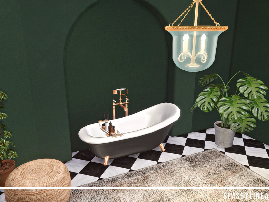 Black and white tiles, dark green walls and gold fixtures and appliances make this bathroom your private luxury spa. Soak in the free standing bathtub or enjoy a hot shower - either way, you will feel like a royal when getting ready in the morning!