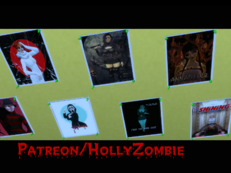 Seven Posters of Famous Horror Icons I have made into female sims and then made and edited photos of them.