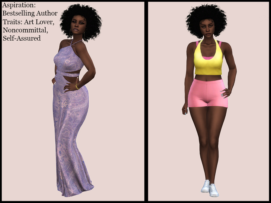 Please check the Creator Notes tab to see my DLCs and the Required tab for the CC the sim uses, which is !needed! to make the sim in your game match my previews.