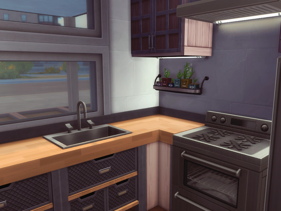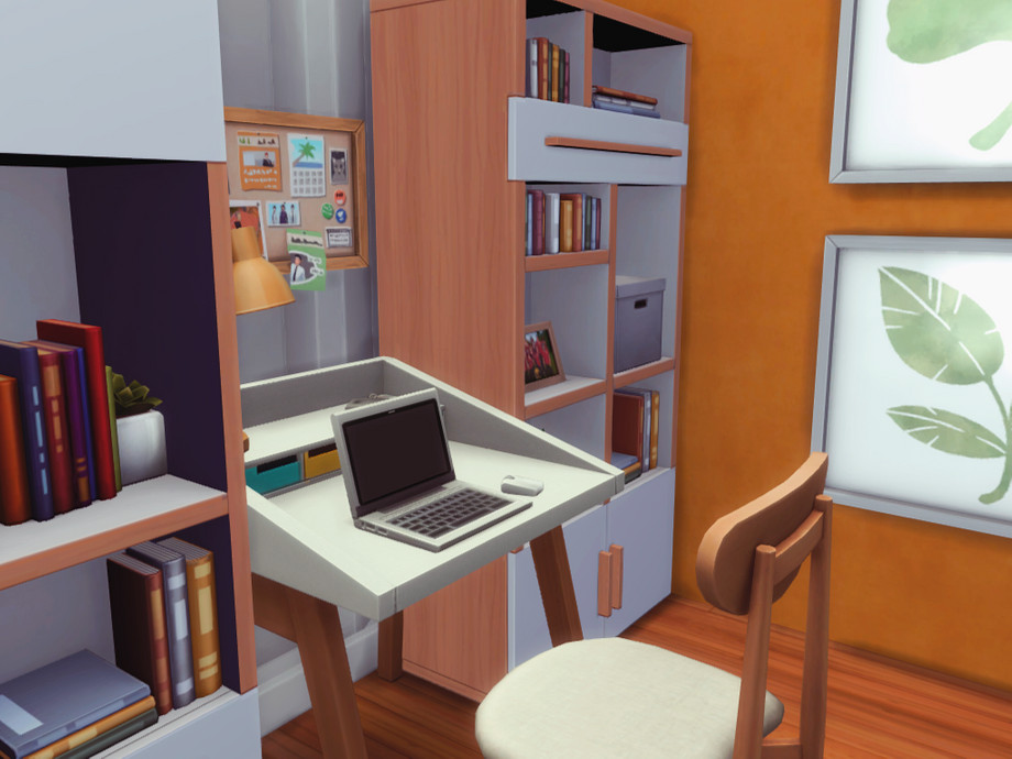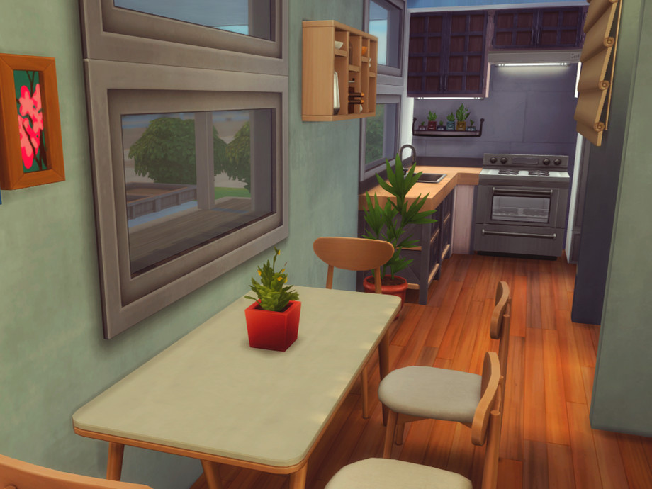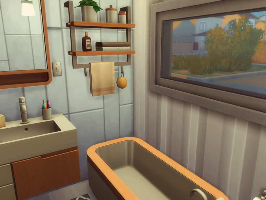 Can't really say it's a starter home, since it's not the cheapest. It is however pretty small! It's perfect for a single Sim or a couple and even though it's located on a tiny Evergreen Harbor 20x15 lot it has absolutely everything you need.