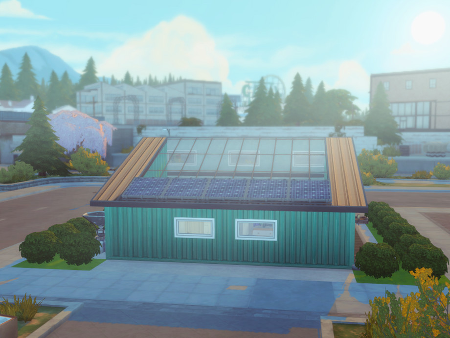 To make sure your Sims are self sufficient, this eco-friendly house is equipped with a few solar panels, wind turbine, dew collector and lots of planters to grow your fruits and veggies. There's bugs and bees too! And more to that - thanks to almost fully glassed roof you will never suffer from lack of natural light.