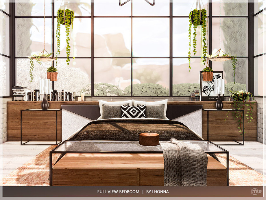 Large, comfortable modern bedroom with big windows. The room is furnished, tested, and ready to play.
