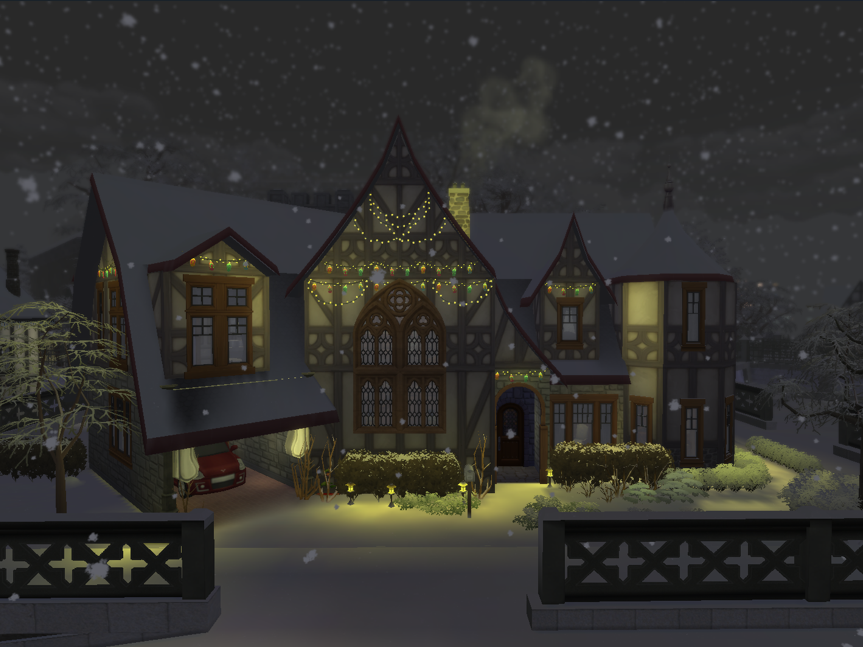Embrace the warmth of the season in this enchanting Tudor-style half-timber Christmas house. Nestled in a snowy landscape, this cozy home features charming exposed beams, festive holiday decor, and a roaring fireplace perfect for winter gatherings. #TimberlandManor #Sims4Build #TudorXmasHouse #HalfTimberStyle #HolidayHome #WinterWonderland #Sims4Christmas #CozyHomeVibes #Seasons #FestiveBuild