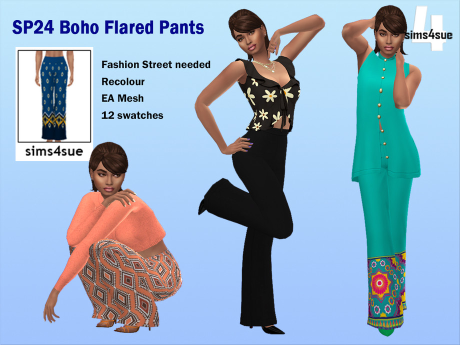 Flared pants from the Fashion Street kit on plain and boho patterns