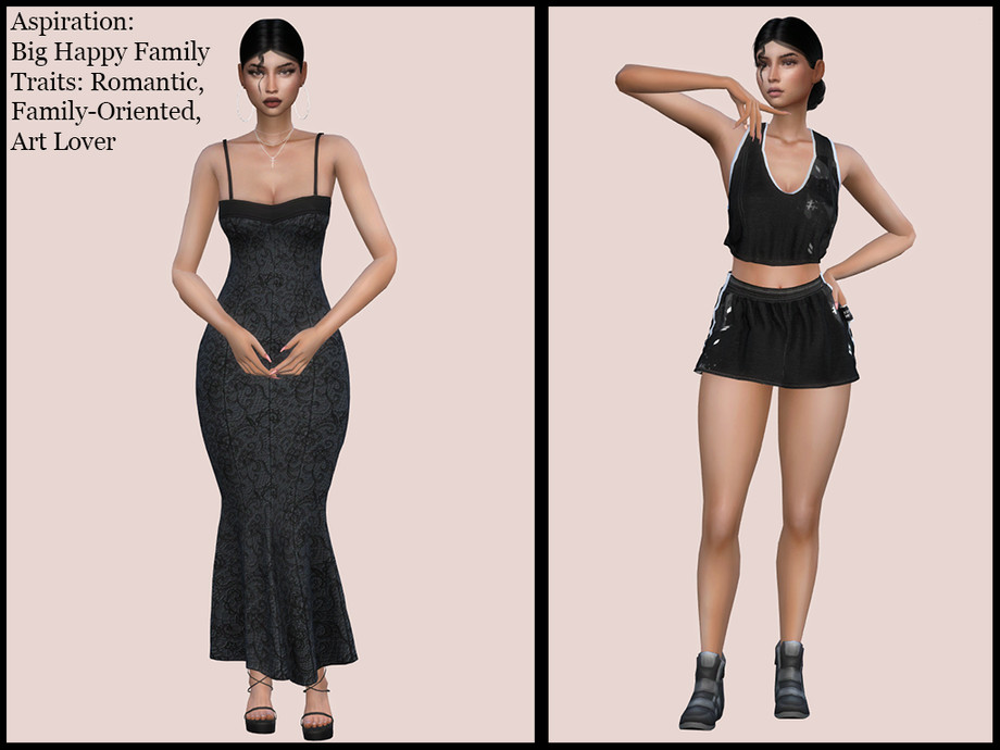 Please check the Creator Notes tab to see my DLCs and the Required tab for the CC the sim uses, which is !needed! to make the sim in your game match my previews.