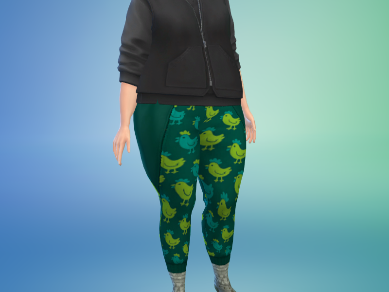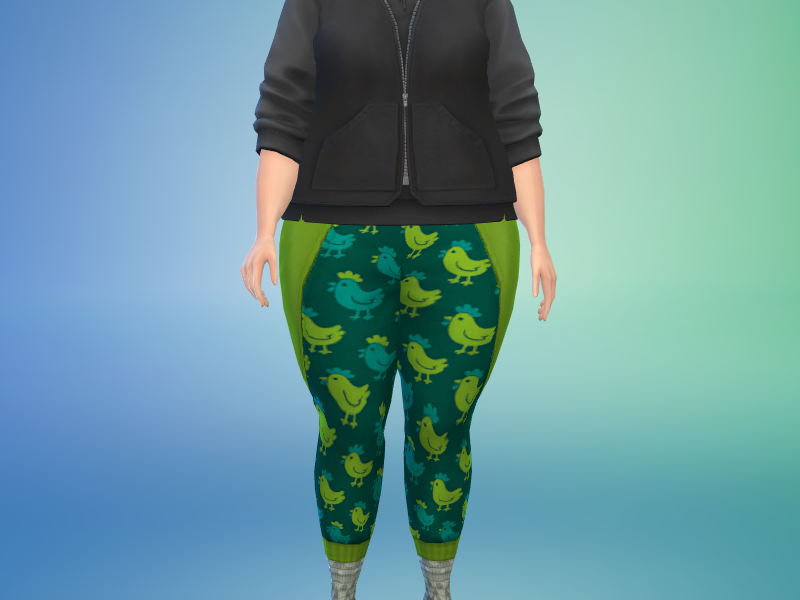 Behold, the awesome chicken pants! Recently, in a Facebook group that I belong to, there was a bunch of chatter over an AI generated Sims 4 image that included a rather fantastic pair of colorful chicken pants. I decided to create them!