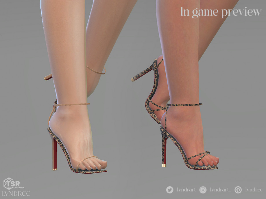 Two pair of high heel sandals with animal print motif and ankle support. In 20 trendy shades, those shoes will be perfect accessory for party and warm weather outfits.