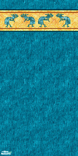 Part of the Kokopelli Kitchen set: this vibrant turquoise wallpaper with bright Kokopelli design will definitely wake up sleepy Sims as they stagger toward the morning breakfast table.