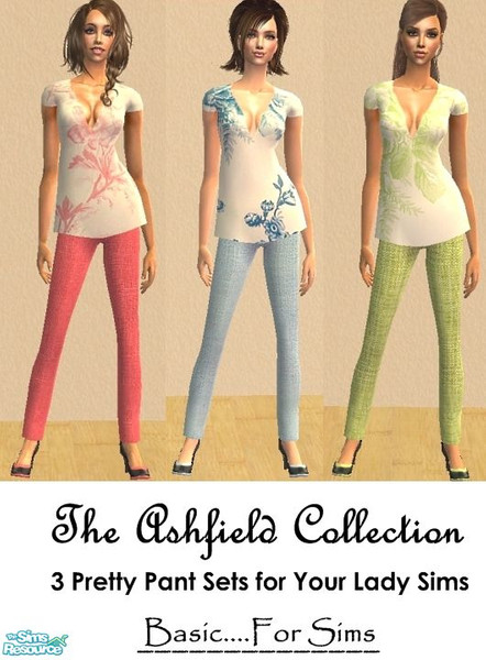Pretty floral tops with pretty pastel pants. These outfits are completed with sassy coordinating high heels. Your Lady Sim will look pretty and summer fresh in these!