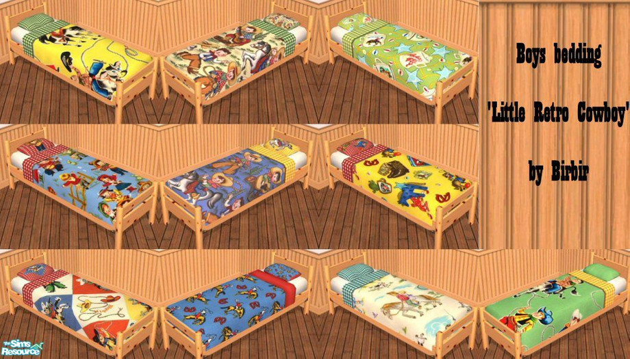 Ten beddings with retro cowboy prints.
