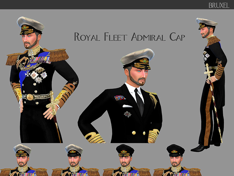 Navy themed cap great for Captains, Admirals, Royals. Male and female, Could go with alot of formal outfits. Works with hair and sliders, the brim is shiney slight bit.