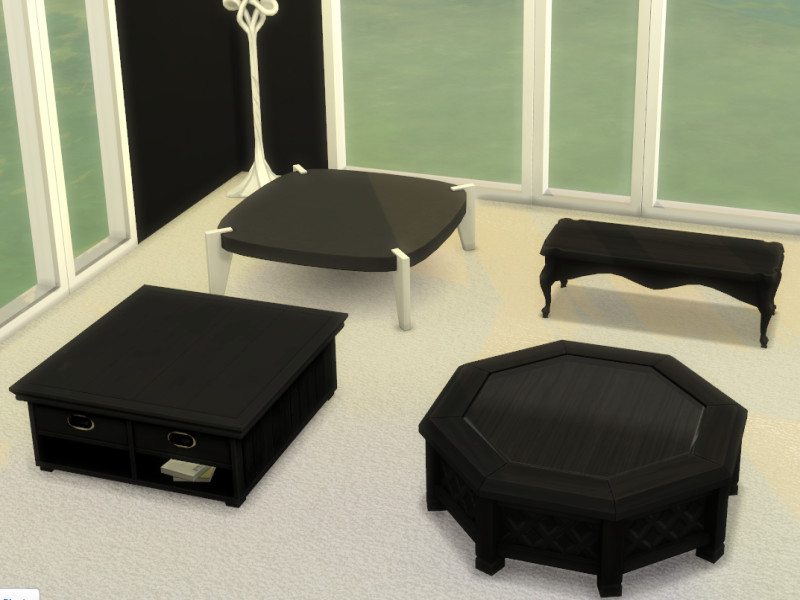 A selection of coffee tables for your Sim's living room, a choice of both black and white.