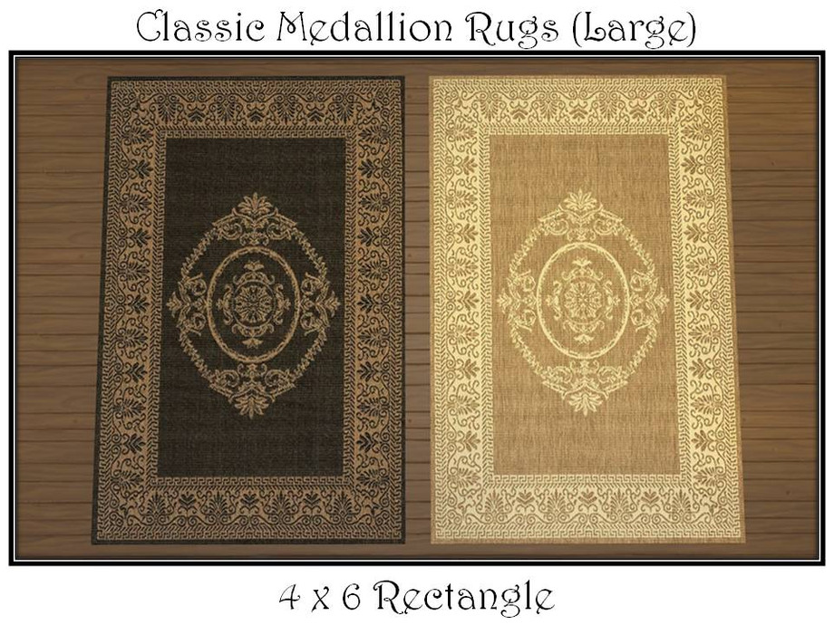 These classic medallion rugs are the perfect complement to your traditional or contemporary decor. Four color variations in two sizes: 4 x 6 rectangle and 2 x 3 rectangle.