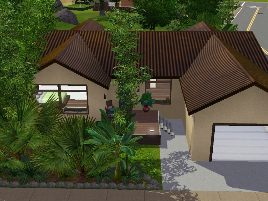 This tropical home is small, yet still provides a sense of luxury. The home is semi-hidden from the road by the luscious gardens, and there is a spa out the back for everyone's enjoyment.