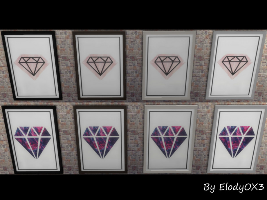 Hello simmers ! here's a set of minimalist pink and purple Diamonds paintings.