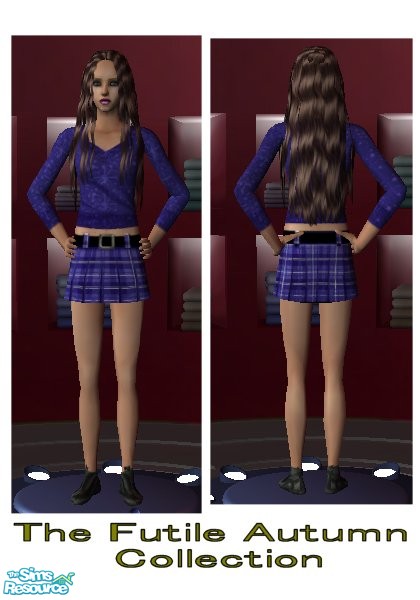 Jumper and Tartan Kilt set. Jumper and kilts imported from teenwear and recoloured over an original chemise. (Note the U in Colour, wink wink.)