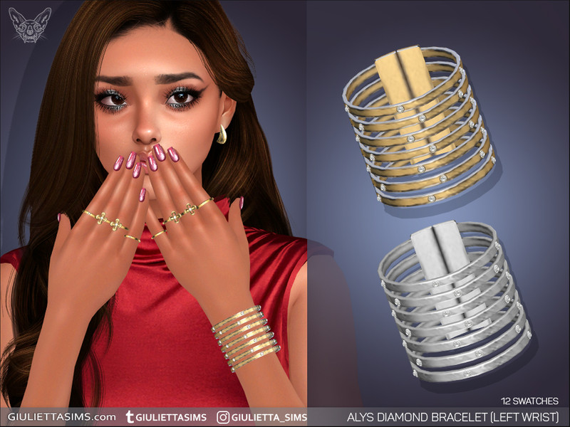 Alys Diamond Bracelet (left wrist) comes with 12 swatches.
